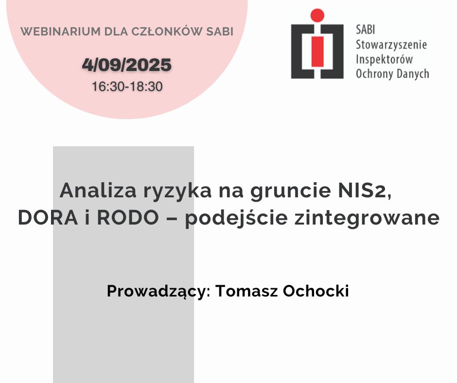 Webinar poświęcony będzie zintegrowanemu podejściu do analizy ryzyka w kontekście regulacji NIS2, DORA i RODO.